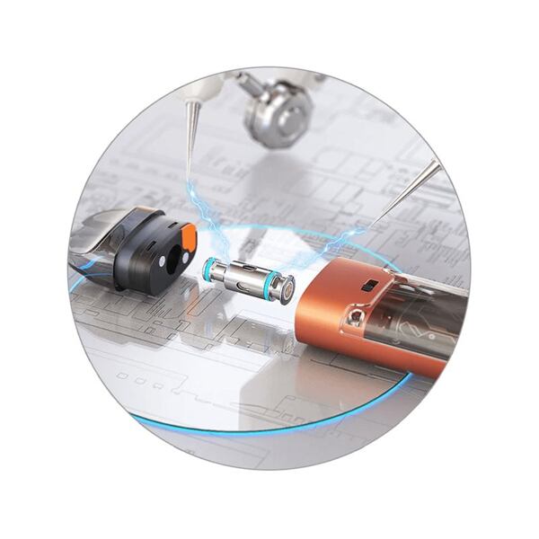 V těle e-cigarety na vás čeká moderní elektronický čip s inteligentní detekcí odporu a automatickým provozem. Pro spínání tak nebudete potřebovat žádné tlačítko, jednoduše přiložíte ústa k náustku a potahujete. Výkon se rovněž nastaví automaticky dle odporu žhavící hlavy a dle zvoleného režimu intenzity.