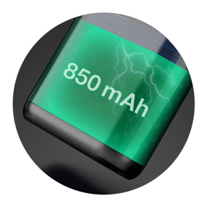 Uvnitř kapesního těla e-cigarety se nachází překvapivě velká kapacita integrované baterie. V těle se nachází baterie s kapacitou 850 mAh pro dlouhé hodiny nerušeného vapování. V případě potřeby pak stačí jednoduše připojit USB-C kabel a baterii znovu kdykoliv dobít do plné kapacity.