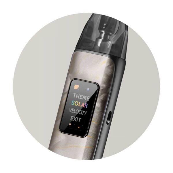 Na velkém barevném TFT displeji o úhlopříčce 0.96" budete mít vždy po ruce všechny důležité informace o nastaveném výkonu, aktuálním odporu, počtu potahů nebo stavu baterie. V nastavení je navíc možné přepínat mezi grafickými schématy. Na výběr jsou dvě varianty, které ovlivňují grafiku pozadí a celkovou strukturu zobrazených informací.