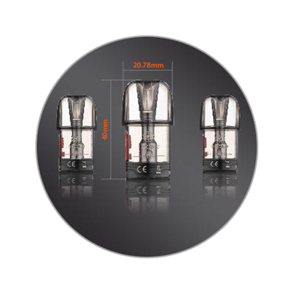 Ve vrchní části se nachází cartridge ze série dotPod Nano. Tato cartridge nabídne základní objem 2 ml a praktické boční plnění se silikonovou záslepkou. V základním balení potom najdete hned dvě tyto cartridge s rozdílnými odpory integrovaného tělíska. První z nich nabídne odpor 0,8 ohm a je vhodná pro vzdušnější klasické šlukování a použití náplní s volným nikotinem. Druhá cartridge disponuje odporem 1,0 ohm a je ideální pro nikotinové soli a utažený MTL vaping.