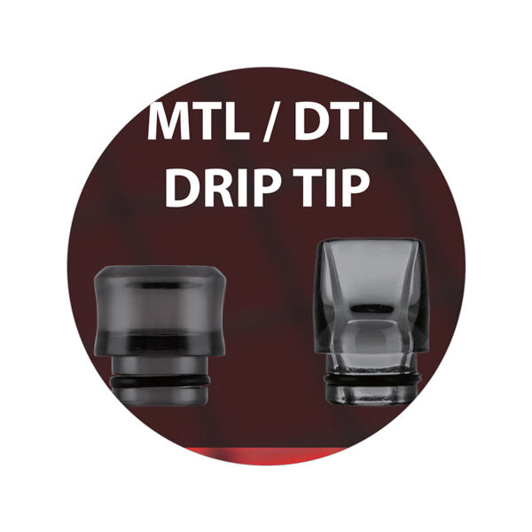 V základním balení najdete také dva typy náustku. Ten je u cartridge vyměnitelný, můžete si tak proto sami zvolit, zda vám bude více vyhovovat širší DL náustek, nebo užší MTL náustek. Oba dva náustky nabídnou také velice příjemný tvar pro komfortní držení v ústech a příjemné používání.