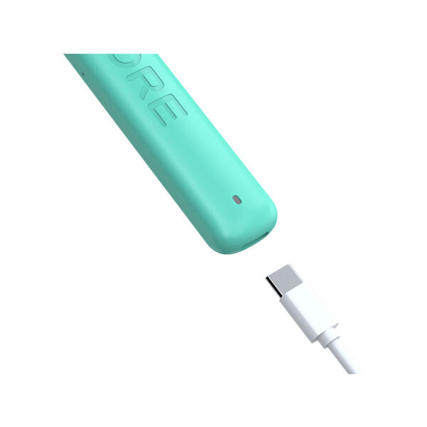 Uvnitř kompaktního těla se nachází integrovaná baterie s kapacitou 350 mAh. Ta se postará o nerušený mnohahodinový provoz bez potřeby dalšího dobíjení. O stavu baterie vás bude informovat LED dioda ve spodní části. V případě potřeby je možné baterii kdykoliv dobít pomocí portu USB-C ve spodní části. Dobíjecí kabel není součástí základního balení.