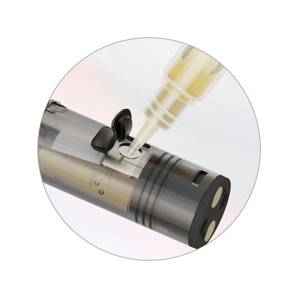 Cartridge nabídne jednoduché boční plnění se silikonovou záslepkou. Pokud se vám stane, že dojde e-liquid, jednoduše záslepku odklopíte a během pár vteřin máte opětovně naplněno. Proces plnění je účinný, rychlý, praktický a čistý.