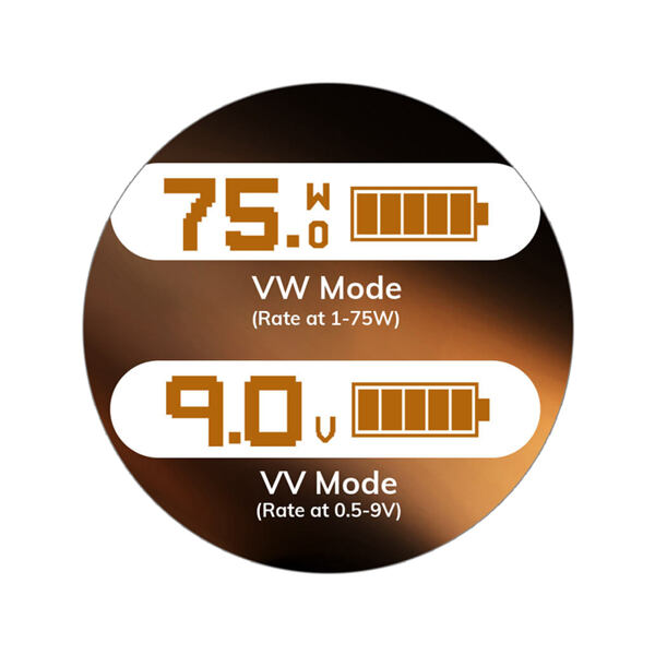 Praktický displej v boční části nabídne stručné a praktické uživatelské rozhraní s možností výběru jednoho ze dvou výstupních režimů. Mod pracuje s režimem výkonu v rozpětí 1 - 75 W, nebo s režimem variabilního výstupního napětí v rozsahu 0.5 - 9 V. Pohodlně si během pár vteřin zvolíte potřebný režim a následně si už můžete regulovat potřebný parametr dle potřeby pomocí praktických tlačítek umístěných pod displejem.