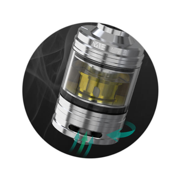 U clearomizéru Melo 4 samozřejmě nechybí oblíbené vrchní plnění s jednoduchým výsuvným uzávěrem. Není potřeba nic složitě šroubovat, jen zatlačte a vysuňte uzávěr do strany. Pak už dolijte e-liquid podle potřeby. Tuhost potahu si lze upravit ve spodní části, kde se nachází dva plně regulovatelné vzduchové otvory. Vše si tak přizpůsobte svým představám. Melo 4 je k dostání v řadě různých barevných variant, z nichž si zaručeně vybere každý.