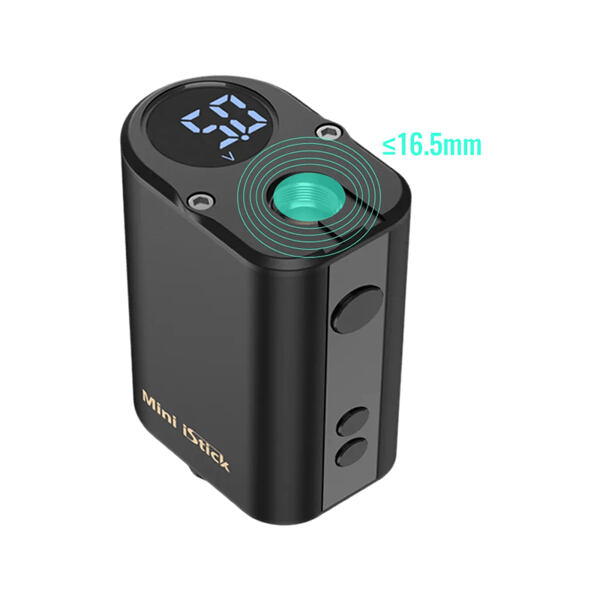 Ve vrchní části modu Eleaf Mini iStick 20W se nachází tradiční závit typu 510. Z důvodu konstrukčních limitací doporučuje výrobce mod osazovat atomizéry s průměrem maximálně 16,5 mm. Díky tomu si bude mod skvěle rozumět s kompaktnějšími MTL atomizéry, například s populárními tanky ze série Eleaf GS, jako je Eleaf GSTurbo, nebo Eleaf GS Drive Tank.