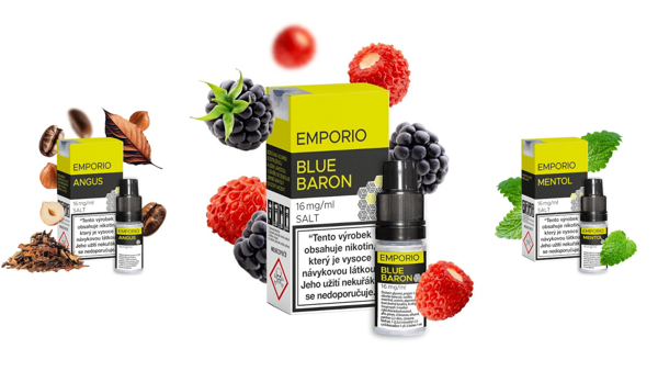 Kolekce salt nikotinových e-liquidů nabídne nepřeberné množství druhů, jež dokáží oslovit milovníky ovoce, dezertů i tabáků. Jedná se o kvalitní české příchutě renomovaného výrobce, který již v minulosti představil sérii skvělých samostatných příchutí a řadu e-liquidů Emporio. Nové náplně Emporio Salt obsahují stále více oblíbenou nikotinovou sůl s koncentrací 12 a 20 mg/ml, která se rychleji vstřebává a nevyvolává dráždivý pocit v krku. Díky tomu je možné inhalovat vyšší dávku nikotinu v každém potahu, ovšem v mnohem delších intervalech. Tím se výrazně prodlouží životnost žhavících hlav, šetří se kapacita baterie a v neposlední řadě také spotřeba samotné náplně.