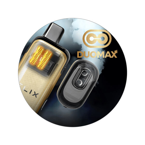 Freemax Elix se představuje s cartridgemi opatřenými novou inovativní technologií Duomax. Cartridge typu Duomax disponují dvěma oddělenými komorami, přičemž v každé se nachází samostatně umístěné mesh pletivo. Díky podpoře duálního mesh pletiva zvládne e-cigareta rychlejší náběh žhavení, plnější a výraznější chuť a delší životnost. Proti konkurenčním běžným cartridgím se jedná až o trojnásobně delší životnost a trojnásobně výraznější chuť.