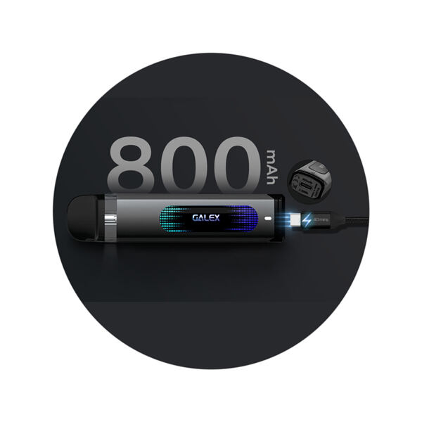 Uvnitř kompaktního těla modelu Freemax Galex Pod Kit se ukrývá integrovaná baterie se solidní kapacitou 800 mAh, která si hravě poradí s intenzivním používáním a dlouhou výdrží bez nutnosti častého dobíjení. V případě potřeby potom stačí jednoduše připojit USB-C kabel do slotu ve spodní části a baterii si můžete kdykoliv opětovně a pohodlně dobít.