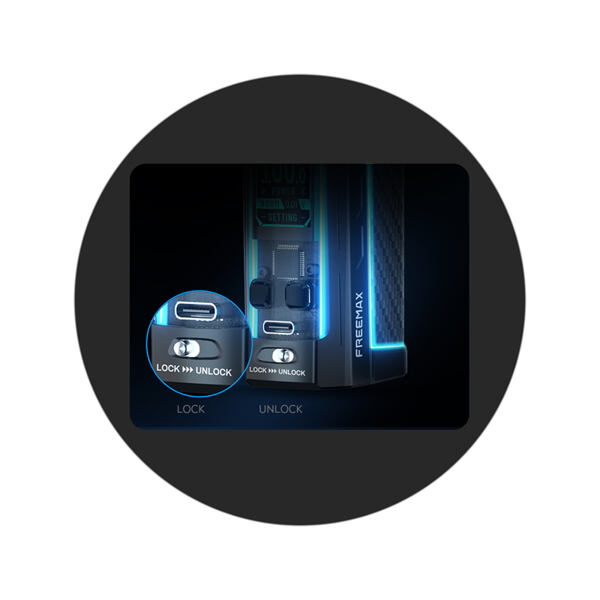 Na předním ovládacím panelu modu se nachází oblíbený prvek v podobě manuálního zámku. Jednoduchým pohybem tak můžete mod uzamknout a zabránit tak nechtěnému sepnutí, nebo přenastavení hodnot, například při častém přenášení v kapse, nebo v cestovním zavazadle. Přejetím prstu můžete mod opět jednoduše odemknout a opět se začít věnovat vapování.