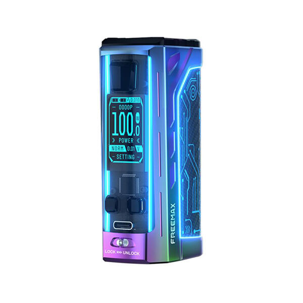 Luxusně zpracovaný a futuristický grip s ohromujícím výstupním výkonem. Tak by se dal ve zkratce definovat překrásný mod Freemax Maxus 2. Tradiční box mod Maxus 2 láká také na slot pro vlastní externí baterie, pokročilou nabídku výstupních režimů a rozsáhlé možnosti v nastavení podsvícení celého modu. Díky svému ergonomickému zpracování a kvalitně zpracované kovové konstrukci se perfektně drží v ruce. Jeho rozměry činí jen 51.9 x 31 x 89.5 mm. Tělo modu potom ukrývá slot pro vložení dvou externích baterií typu 18650, díky pohonu na dvě baterie zvládne mod pracovat s obrovským výstupním výkonem a zvládne také hladký chod s rychlým náběhem žhavení. Baterie budete moci pohodlně dobíjet přímo uvnitř modu, na jeho těle se totiž nachází USB-C port s podporou nabíjení s parametry 5V / 2A. Mimo slot pro baterii ukrývá tělo modu vysoce kvalitní elektronický čip FM CHIP 3.0. Díky perfektní elektronice se můžete těšit na snadnou uživatelskou obsluhu a pohodlné nastavení všech parametrů.