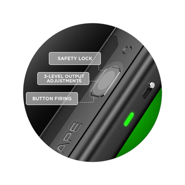 Hlavní výsadou celého zařízení je praktické multifunkční tlačítko umístěné na předním panelu. Pomocí tlačítka si můžete e-cigaretu kdykoliv bezpečně uzamknout, nebo ho můžete použít pro spuštění žhavení, či pro změnu výstupního režimu intenzity. Na výběr jsou hned tři výstupní režimy pro rozdílný výstupní výkon během potahování. Celé ovládání tak hravě zvládnete pouhým jedním tlačítkem.