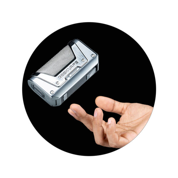 GeekVape L200 je ergonomicky perfektně zpracovaný mod, který přichází s kvalitní kovovou konstrukcí a zadním panelem pokrytým speciální kůží. Díky tradičnímu box modu designu se příjemně drží v ruce během používání. Zároveň nabídne kompaktnější rozměry pro uživatele, kteří neholdují extrémně velkým modům.
