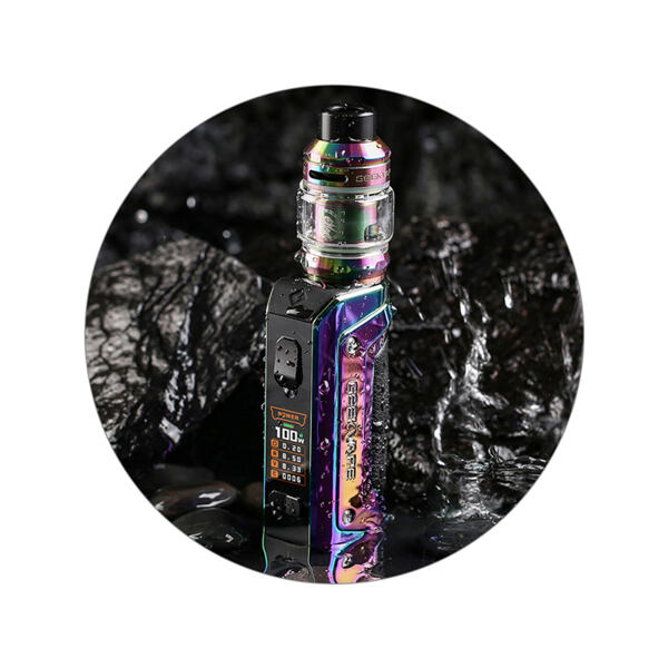 Elektronická cigareta - DL potah, 1x slot pro 18650, objem 5,5ml, manuální spínání, výkon 5-100W, dobíjení USB-C, regulace air-flow, displej, odolnost IP68, tři výstupní režimy, manuální A-Lock zámek.