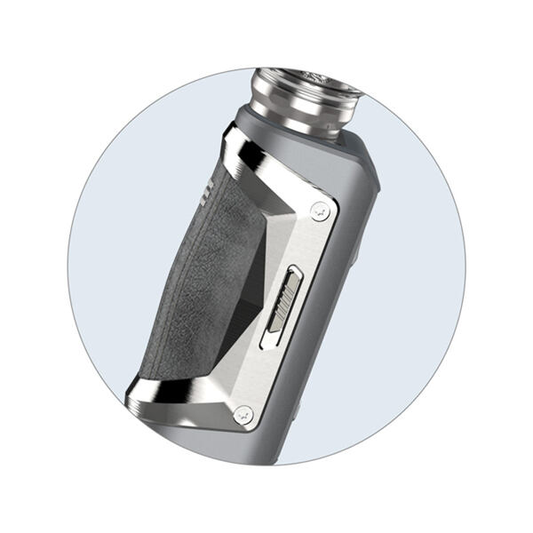 GeekVape S100 pokračuje v zaběhnutých kolejích svých předchůdců ze série Aegis a přináší opět ergonomickou konstrukci pro co nejkomfortnější užívání. Zadní část modu se zaoblenou konstrukcí umožňuje pohodlné držení v ruce a snadné používání. V přední části se potom nachází ergonomicky tvarované spínací tlačítko pro pohodlné spínaní žhavení. Mod je k dostání v celé řadě barev.