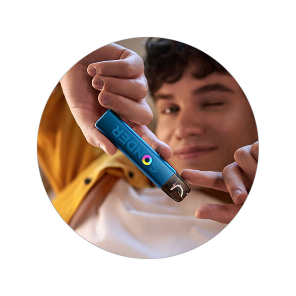 Zajímavým designovým prvkem je stylová indikační RGB dioda, která během potahování svítí v duhových odstínech a dodává tak celé e-cigaretě nezaměnitelný vzhled. Pokud se blíží baterie ke svému úplnému vybití, na konci potahu se dioda rozsvítí červeně a indikuje vám, že bude nutné brzy dobít baterii. Stylová RGB dioda je příjemným zvýrazněním originálního vzhledu celé e-cigarety Sonder Q 2.