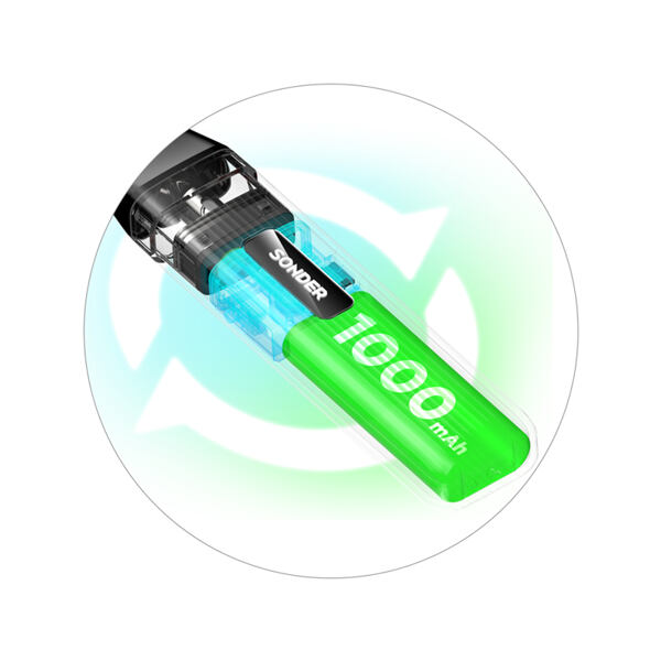 V kompaktním těle zařízení Sonder Q Pod na vás čeká integrovaná baterie s obrovskou kapacitou 1000 mAh pro dlouhou výdrž a bezproblémový chod. U většiny vaperů zvládne baterie až celodenní výdrž. Postará se také o rychlý náběh žhavení a stabilní výstupní výkon, jenž dosahuje až 20 W dle aktuálního odporu cartridge. Baterii budete moci kdykoliv pohodlně dobít prostřednictvím portu USB-C v boční části.