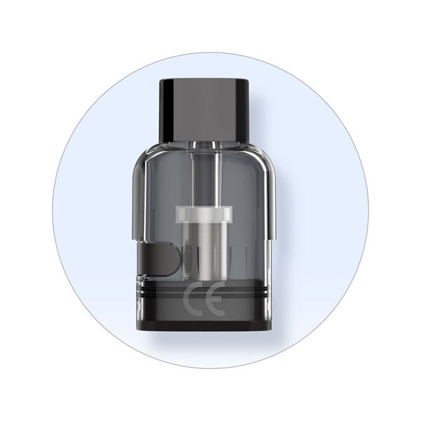 Součástí základního balení jsou dvě cartridge s objemem 2 ml a integrovaným žhavícím tělískem s kanthalovým mesh pletivem. Obě tyto cartridge můžete používat jak se standardními nikotinovými a beznikotinovými náplněmi, tak také s e-liquidy s nikotinovou solí. První z nich nabídne odpor 1,2 ohm a utaženější MTL potah, druhá cartridge s odporem 0,8 ohm nabídne vzdušnější MTL potah.