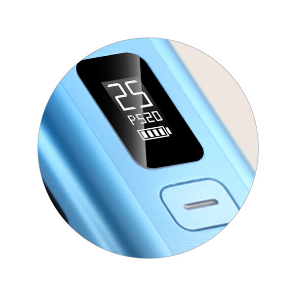 V přední části se nachází přehledný displej a velké spínací tlačítko, které plní celou řadu úloh. Pomocí tlačítka můžete zařízení pohodlně zapnout a vypnout, nebo ho použít pro sepnutí samotného žhavení. Na displeji budete mít neustálý přehled o aktuálním stavu baterie, o počtu potahů a o nastaveném výkonu zařízení, žádná informace vám neunikne.