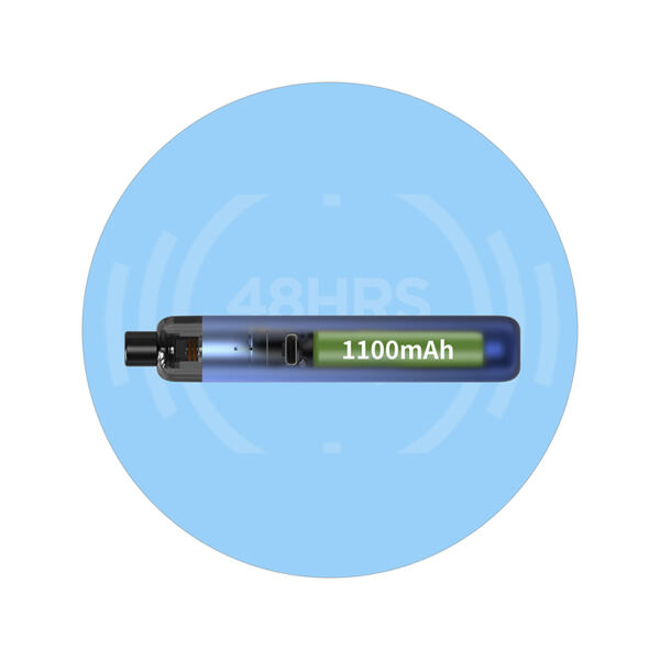 Uvnitř těla e-cigarety se nachází integrovaná baterie se solidní kapacitou 1100 mAh. Ta se postará o dlouhé hodiny nerušeného potahování a zároveň dodá e-cigaretě potřebný výkon pro použití jednoho ze tří režimů intenzity výstupu. Baterii můžete kdykoliv pohodlně dobít přímo na těle připojením USB-C kabelu. Lze dobíjet proudem až 1 A.