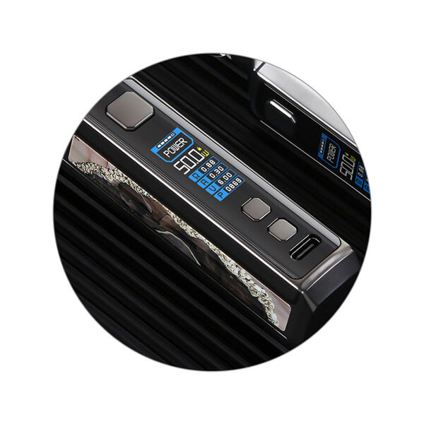 V přední části zařízení se nachází přehledný ovládací panel, na kterém najdete velký displej, dvě regulační tlačítka a velké spínací tlačítko. Pomocí tlačítek si snadno zvolíte vhodný výstupní výkon v rozsahu 5 - 50 W, velké tlačítko slouží pro spínání žhavení a zapnutí, nebo pro vypnutí. Ovládání je nesmírně snadné a intuitivní, seznámíte se s ním během pár minut.