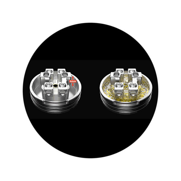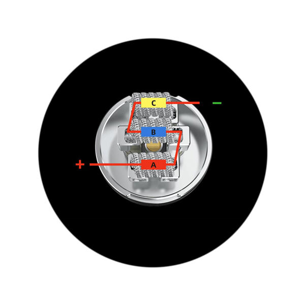 Samotná základna se sériovým zapojením pojme až tři spirálky zapojené souběžně. Tři sloupky pro tři samostatné spirálky zajistí větší variabilitu při tvorbě různorodých buildů a s atomizérem se tak nebudete ani na vteřinu nudit. Díky podpoře zapojení až třech spirálek si atomizér poradí také s ohromujícím výstupním výkonem, hravě zvládne výstupní výkon až 200 W. Díky dělící záslepce v balení můžete atomizér také užívat v konfiguraci na dvě spirálky v sérii.