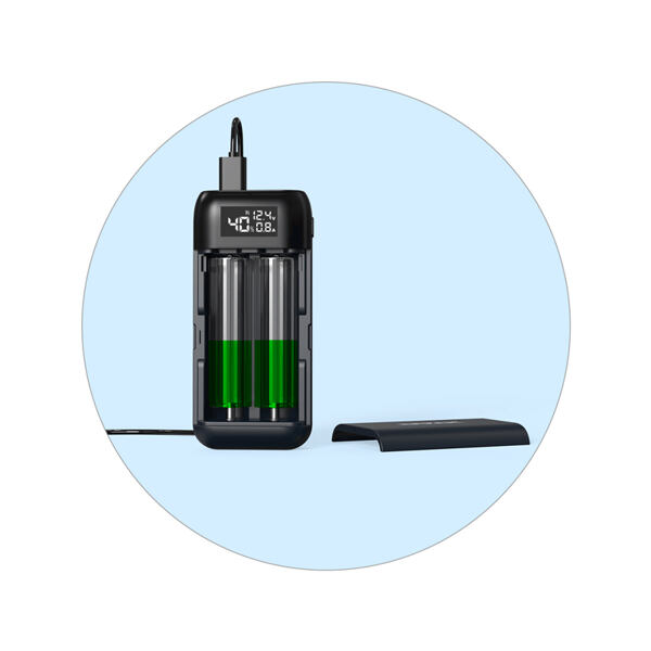 Hybridní nabíječka baterií / powerbanka, 2 sloty, vhodné pro baterie Li-ion/IMR/INR/ICR, displej, USB-C port, maximální dobíjecí proud v jednom slotu 2 A, balancované nabíjení, funkce aktivace baterií 0V, tříúrovňové nabíjení, teplotní ochrana.