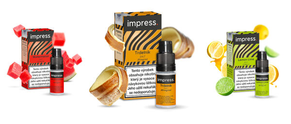 Výrobce Imperia uvádí na trh zajímavou kolekci salt nikotinových e-liquidů Impress Salt, která nadchne naprosto všechny vapery díky rozmanitým druhům příchutí. V kolekci totiž najdete ovocné směsi, tabákovky i velice chutné dezertovky. Hlavní doménou celé řady jsou originální a promyšlené receptury s vysoce kvalitními ingrediencemi a maximálním důrazem na chuť. Rozhodně na vás udělají dojem.