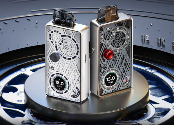 Innokin Klypse Mecha Pod Kit šlape jako hodinky. Pod systém zkonstruovaný z prémiové zinkové slitiny s promyšleným designem inspirovaným strojkem v tradičních mechanických hodinkách je ukázkou mistrovské zručnosti designérů ze společnosti Innokin. S přehledným uživatelským rozhraním a intuitivním ovládáním pomocí otočného kolečka se nebudete ani na vteřinu nudit a díky velké kapacitě baterie a podpoře cartridgí Klypse se můžete těšit na nekonečné hodiny příjemného vapování.