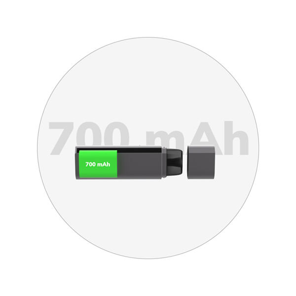 Uvnitř kompaktního těla se nachází integrovaná baterie se solidní kapacitou 700 mAh pro dlouhé hodiny nerušeného potahování. Baterie se postará o hladký chod a rychlý náběh žhavení. Samozřejmostí je potom také elektronický čip pro ochranu baterie a cartridge, vaše baterie tak bude neustále v bezpečí a vy si můžete užívat chuť svého oblíbeného e-liquidu bez starostí.