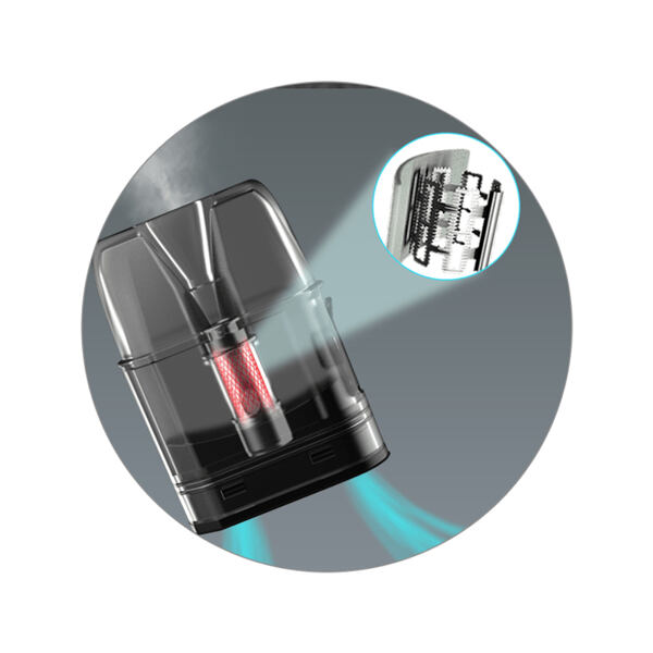 Ve vrchní části e-cigarety Klypse Pod Kit se nachází praktická cartridge s objemem 2 ml a jednoduchým systémem bočního plnění. Vzduch do cartridge je nasáván zespodu. Uvnitř jejího těla se nachází integrované tělísko s mesh pletivem o odporu 0,8 ohm pro optimální tuhost MTL potahu. Mesh pletivo navíc nabídne větší odpařovací plochu, rychlejší náběh žhavení a plnější chuť.