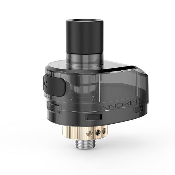 Ve vrchní části je na tělo baterie nasazena cartridge s obrovským objemem na e-liquid. Snadno do ní doplníte až 4,5 ml e-liquidu. Cartridge disponuje bočním plnícím otvorem pro co nejsnazší doplňování. Vrchní část cartridge je opatřena praktickým vyměnitelným náustkem. Další výhodou je přítomnost slotu na žhavící tělísko, který se nachází ve spodní části. Cartridge je kompatibilní s celou rodinou tělísek Innokin Z-Coil. V balení najdete hned dvě. První s odporem 0,3 ohm je vhodné pro DL potah, druhé tělísko s odporem 0,8 ohm zase využijete pro MTL šlukování. Výslednou tvorbu páry si ještě můžete doladit díky regulačnímu airflow kroužku, který se nachází ve spodní části cartridge. Možnosti použití modelu Innokin Kroma-Z Mod Pod Kit jsou tak skutečně rozsáhlé.