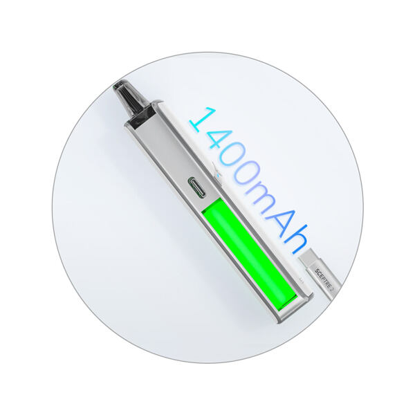 Tělo zařízení disponuje obrovskou kapacitou integrované baterie. Tato kapacita činí ohromujících 1400 mAh, nabídne tak skutečně dlouhou výdrž na jedno nabití a hladký, bezproblémový chod celého zařízení s rychlým náběhem žhavení. Baterii můžete kdykoliv pohodlně dobíjet pomocí moderního portu USB-C přímo na těle. Větší kapacitu baterie ocení zejména příznivci volnějšího a výkonnějšího RDL vapingu.