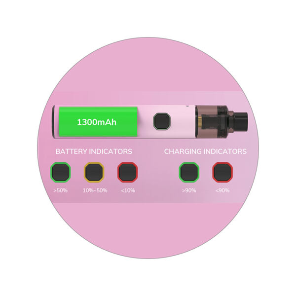 V těle e-cigarety na vás čeká integrovaná baterie s velkou kapacitou 1300 mAh, která si u slabších kuřáků bez problému poradí s celodenním provozem. Uvnitř tlačítka v přední části se navíc nachází indikační LED dioda, která vás neustále informuje o stavu baterie jak během používání, tak také během samotného dobíjení. Baterii je možné dobíjet pomocí portu USB-C na těle e-cigarety.