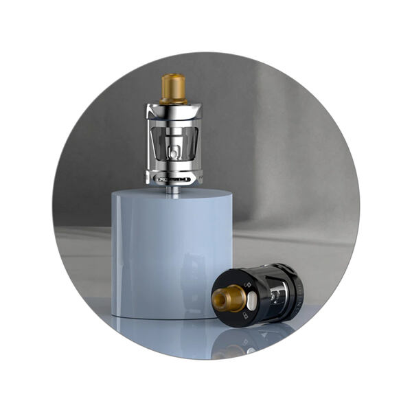 Ve vrchní části se nachází praktický plnící systém. V případě nutnosti doplnění tanku jednoduše pootočíte uzávěrem směrem k ikoně odemčeného zámku a objeví se před vámi slot pro plnění vybavený silikonovou membránou. Doplněno máte během pár vteřin. Novinkou je také vylepšený systém airflow. Ten se nachází ve spodní části clearomizéru. Plynulým otáčením kroužku pro regulaci si přizpůsobíte přísun vzduchu pro RDL, nebo MTL vaping dle potřeby. Clearomizér je k dostání hned ve třech stylových barvách, které esteticky ladí s kterýmkoliv modem. Tuto kompatibilitu navíc zajišťuje závit typu 510 ve spodní části clearomizéru.
