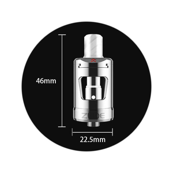 Innokin Zlide Tank v TPD verzi nabídne praktické a kompaktní rozměry. Délka atomizéru činí jen 45,9 mm a průměr se zastavil na krásných 22,7 mm u spodní základny. Ve spodní části atomizéru se nachází závit typu 510, díky čemuž je atomizér kompatibilní téměř se všemi mody na současném trhu.