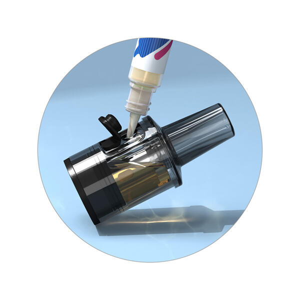 Cartridge AST disponují praktickým systémem bočního plnění. V boční části se nachází silikonová záslepka, po jejímž odejmutí můžete začít plnit. Do plné kapacity 2 ml doplníte během pár vteřin. Poté se můžete opět začít věnovat potahování.