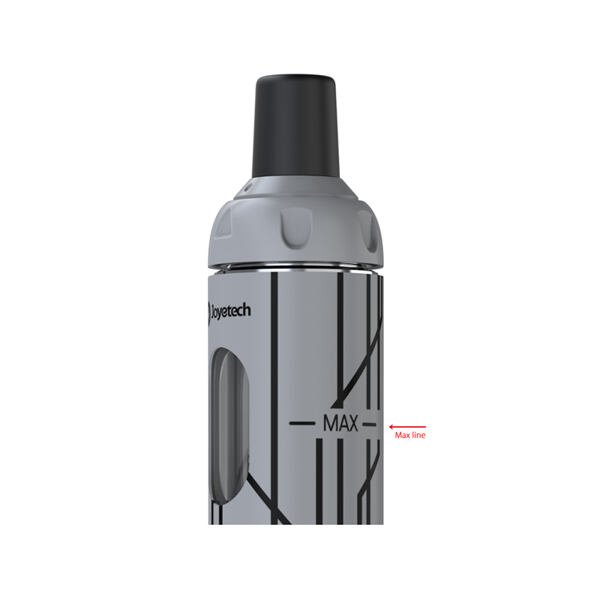 Odšroubováním vrchního uzávěru s náustkem a tělískem zpřístupníte samotný tank. Ten nabídne objem na 2 ml e-liquidu. Na boční straně tanku se nachází praktická ryska MAX, která vás upozorní na maximální hladinu e-liquidu, po kterou můžete doplňovat. Plnění je velice snadné a rychlé, hravě si s ním poradí zejména začátečníci.