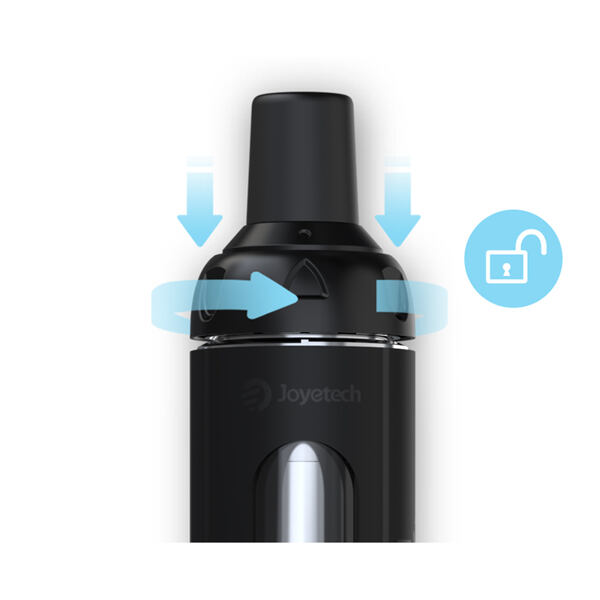 Pokládáte svou e-cigaretu často na stůl v přítomnosti malých dětí? Díky zabudované dětské pojistce si můžete být jisti, že se vaše dítě do clearomizéru nedostane. Pojistku uvolníte jednoduchým stlačením dolů a pootočením vrchního uzávěru, přesně tak, jak to znáte z léčiv a dalších produktů opatřených dětskou pojistkou. Tato pojistka také zabraňuje možnému úniku e-liquidu z tanku.