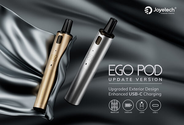 Populární elektronická cigareta Joyetech eGo Pod Kit je zpět, tentokrát v upgradované verzi s přepracovaným designem a podporou nabíjení USB-C. Updatovaná verze si zachovává všechny oblíbené parametry původního modelu, těšit se tak můžete na příjemné užívání a pohodlný beztlačítkový provoz. Model disponuje populární trubkovou konstrukcí a nabídne délku 110 mm. Průměr zařízení se potom zastavil na krásných 19 mm. Díky tradiční ergonomické konstrukci se příjemně používá a snadno přenáší. E-cigareta nabídne jednoduchý provoz díky absenci tlačítek, jednoduše ji tak postačí naplnit a začít používat. Vše potřebné si nastaví zcela automaticky a žhavení se spustí ihned po potažení z náustku, nemusíte se tak starat o jakékoliv tlačítko.