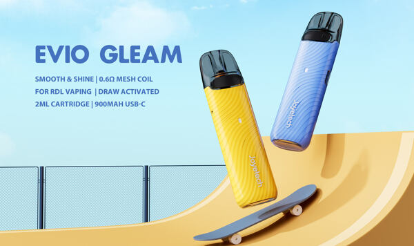 Joyetech EVIO Gleam Pod Kit je model elektronické cigarety pro RDL vaping. V základním balení se nachází tělísko EN Mesh s odporem 0,6ohm, které se postará o optimální produkci páry právě pro utažené přímé potahování, nebo pro vzdušné klasické šlukování. Model tak doporučujeme zejména uživatelům, kteří hledají vzdušnější zařízení a větší množství páry, než u tradičních MTL pod systémů.