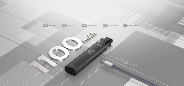 Tělo e-cigarety Joyetech EVIO M Pro se pyšní integrovanou baterií s obrovskou kapacitou baterie. Ta dosahuje až na 1100 mAh, budete tak mít dostatek kapacity pro intenzivnější potahování a pro každodenní využití. Samozřejmostí je potom také podpora moderního nabíjení USB-C s podporou adaptérů až 1A. Díky segmentovému digitálnímu displeji na těle budete mít navíc neustálý přehled o aktuálním stavu baterie díky praktickým dílkům v ikoně baterie. Rozhodně vám neunikne žádná informace.