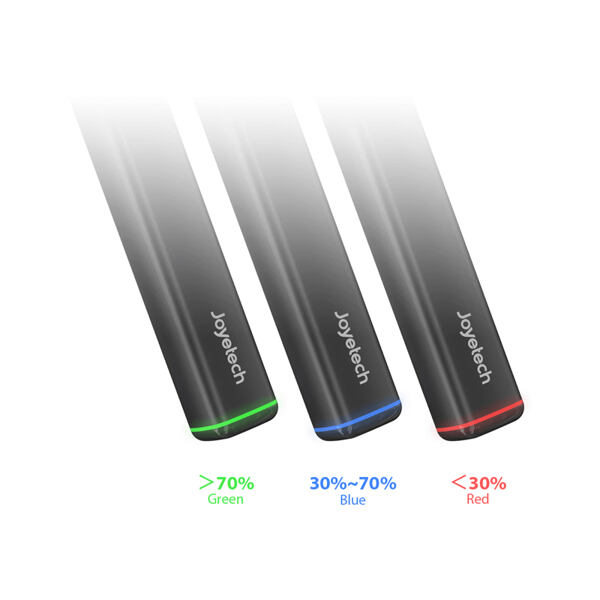Pokud nemáte zrovna při ruce powerbanku, nebo zkrátka volíte raději používání pouze samotného těla e-cigarety, nemusíte se obávat, že byste si nedokázali rychle a snadno ověřit aktuální stav baterie. Ve spodní části těla se totiž nachází praktická LED indikace se třemi různými barvami, ty se mění na základě aktuální procentuální kapacity baterie. Vždy tak poznáte, kdy je čas e-cigaretu dobít.