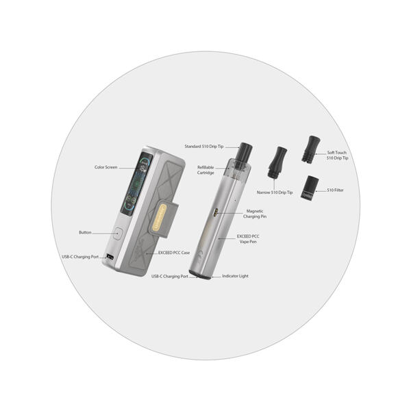 Joyetech Exceed PCC Kit je moderně zpracovaná souprava dobíjecí powerbanky a kompaktního pod systému, která uživatelům přináší obrovskou svobodu v užívání díky inteligentnímu čipsetu Avatar Chip a obrovské kapacitě baterie. S praktickým displejem přímo na těle powerbanky si navíc můžete nastavovat výkon a budete mít neustálý přehled o všech funkcích. Nastavení je hravé, snadné, rychlé a intuitivní, sadu tak ocení jak začátečníci, tak také pokročilí vapeři, jedná se o jedinečnou stylovku vhodnou jak do společnosti, tak také pro každodenní chvíle pohody.
