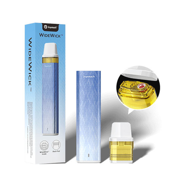 Nespornou výhodou modelu Joyetech WideWick Pod Kit je přítomnost cartridge s objemem 2 ml a odporem 1,2 ohm s technologií WideWickTM. Díky této technologii je e-liquid uzamykán uvnitř vaty, přičemž se absorbuje po celém objemu vaty okolo mesh spirálky uvnitř. Každý potah je tak příjemně výrazný, plný a chutný, mesh pletivo rovnoměrně odpařuje e-liquid po celé délce, aby byl každý potah doslova dokonalý.
