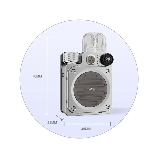 Kumiho THOTH T Pod Kit přináší elegantní spojení netradičního designu a kvalitního pod systému s maximálním důrazem na výraznou chuť e-liquidu. Tělo zařízení připomíná kompaktní retro rádio, celokovová konstrukce je potom nesmírně bytelná a příjemně se drží. Nechte se ohromit integrovanou baterií s kapacitou 1300 mAh a režimem konstantního výstupního napětí pro co nejlepší výsledky při vapování. Poznejte mimořádné chuťové podání díky podpoře platformy náhradních cartridgí Kumiho THOTH a zažijte zcela jedinečný a neopakovatelný zážitek z vapingu.