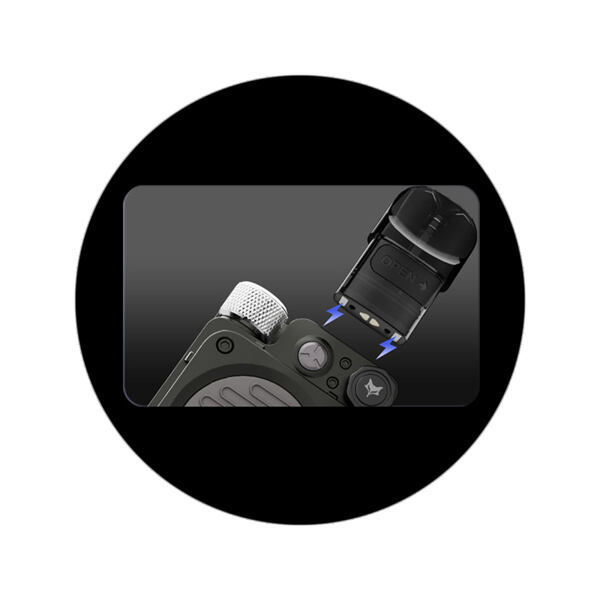 Pro spínání samotného žhavení můžete využít jednu ze dvou dostupných metod. Pokud preferujete konvenční spínání, stačí podržet spínací tlačítko ve vrchní části a začít potahovat. Jestliže však preferujete jednoduchost moderních pod systémů, pro spuštění žhavení vám také postačí jen potáhnout z náustku, žhavení se spustí automaticky bez nutnosti tisknout tlačítko.