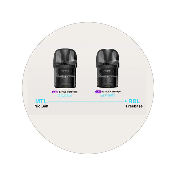 Zařízení Centaurus E40 MAX je kompatibilní s platformou cartridgí E-Plus. V základním balení najdete obě dvě cartridge s integrovanou mesh hlavou o odporech 0,3 ohm a 0,6 ohm. Zařízení je potom také kompatibilní s RBA hlavou, což ocení hlavně milovníci vlastního motání spirálek. RBA hlavu je možné pořídit k zařízení samostatně.