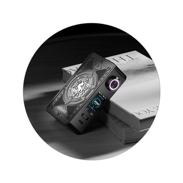 Uvnitř těla modu se nachází slot pro vložení vlastních externích baterií. Mod pracuje se dvěma článkovými bateriemi typu 18650, díky čemuž dokáže vyvinout enormní žhavící výkon a zároveň stabilní výdrž. Samozřejmostí je také podpora dobíjení vlastních baterií přímo v modu. Už tak nebudete muset složitě hledat nabíječku, jednoduše připojíte USB-C kabel k portu v přední části a pohodlně začnete dobíjet.