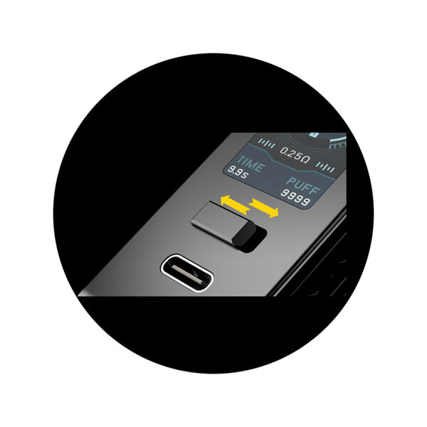 Zajímavým prvkem, který značně usnadní každodenní používání a přenášení e-cigarety, je přítomnost manuálního vypínače na předním panelu. Pro zapnutí, či vypnutí už tak nebudete muset hledat kombinace stisku spínacího tlačítka. Jednoduše posunete posuvník doprava, nebo doleva a budete mít e-cigaretu ihned připravenou k provozu, nebo k cestování.